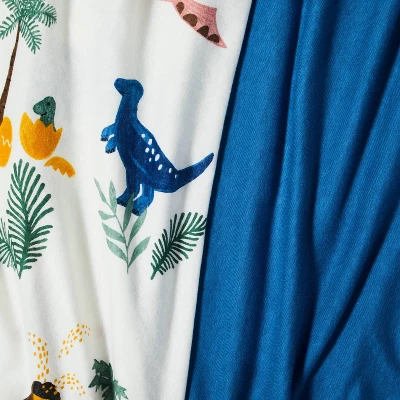- Includes 1 blue and 1 dino-print crib sheet