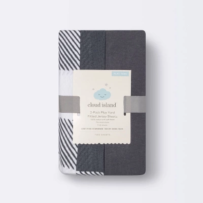 Add classic prints to your baby’s bedding with this 2-Pack Gray Fitted Playard Jersey Sheet Gingham from cloud island™. This crib sheet set makes for a must-have essential when it comes to your baby’s bedding. It includes two fitted sheets featuring black and gray gingham checks and a solid gray color for different choices. The full elastic trim keeps the sheet snugly in place for the perfect fit, while the 100% cotton fabric keeps their sleep space soft and comfortable throughout the day or night. Just coordinate these sheets with a matching baby blanket to create a comfy and cozy sleeping spot.
