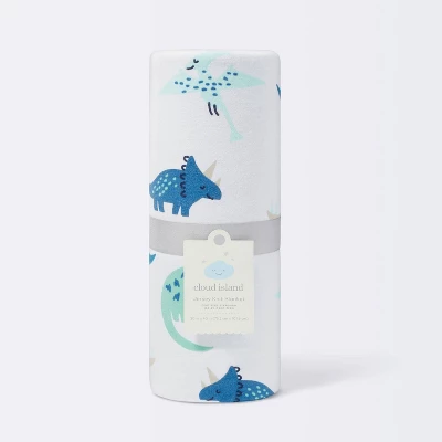 Wrap your baby up in cuddly softness with this Blue/Green Dinos Jersey Knit Faux-Fur Blanket from cloud island™. This jersey knit blanket makes a cozy staple in your baby’s collection of essentials. The green and blue dino print adds cute flair, while the green faux-fur reverse is warm, soft and comfortable against baby’s skin. Neatly finished off with coordinating trim, this printed baby blanket is great for bedtime or to use as a stroller blanket, and is conveniently machine washable for easy care.
