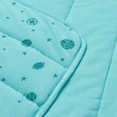 Wrap up your bundle of joy in this Rayon from Bamboo Jersey Quilted Blanket from Cloud Island™. The rayon from bamboo fabric with added spandex is soft to the touch and sure to help your baby stay cool and comfortable whether you lay them down for tummy time or a ride in the stroller. Adorned with an allover sports print on a quilted backdrop, it makes a cute addition to your baby’s nursery decor.