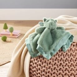 Add some whimsical wonder to your little one’s nursery with this Small Security Blanket Crib Toy from cloud island™. Crafted from soft, fuzzy fabric, this green security blanket is fashioned in a handkerchief style with matching satin trim. It showcases an adorable dragon soft toy at the top with outstretched arms and wings to capture your little one’s attention right away. Perfectly sized for stroller rides and car trips, this blanket makes a cozy companion for your child during playtime and beyond.