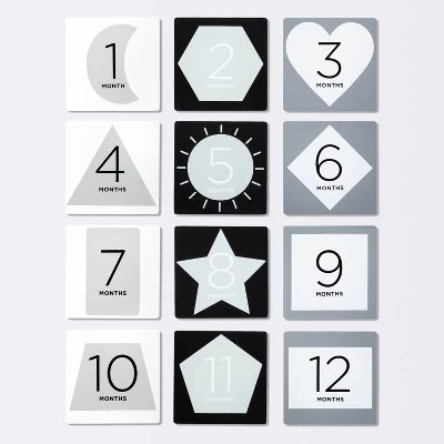 Complement your child’s monthly milestones during their first year with these Square Monthly Milestone Cards from cloud island™. This set of six double-sided cards features a wood design with black, gray and white hues. They include the numbers 1 through 12, the word “months” and assorted fun shapes for the perfect accent to any shelf or dresser display.