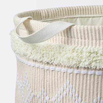 This Tufted Fabric Large Round Storage Decorative Basket from cloud island™ seamlessly blends into your baby’s nursery. The exterior of this round basket has a woven design in khaki and white with tufted accents on the top and base, paired with a cream-colored interior for an elegant look. With handles for easy portability and a roomy interior to stow your child’s toys, blankets and other essentials, the open-top decorative basket is ideal for keeping their space organized.